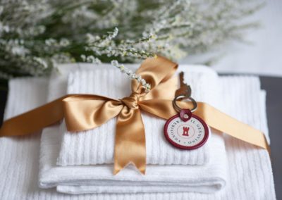 BIANCHERIA DI ALTA QUALITÀ, ACCAPPATOIO (SU RICHIESTA), CIABATTE, LINEA DI CORTESIA